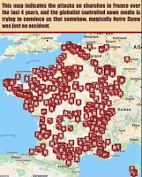Fact: the Cathedral of Notre Dame is but the latest in a series of attacks on France’s Roman Catholic churches…attacks that for the most part went under reported or not reported on at all. Within the past four years literally hundreds of French churches have been vandalized many with fires started, in fact, this past February alone saw ten incidents of vandalism and desecration occurring. On February 5th an alter cloth was set on fire with crosses and statues being torn down and disfigured at Saint-Alain Cathedral in Lavaur. And then just a day later on February 6th vandals at a Catholic church in Nimes entered the sanctuary, throwing the consecrated hosts on the ground and drew a cross on the wall in human excrement. And on February 9th acts of vandalism was reported at the Church of Notre-Dame de Dijon in Côte-d’Or.