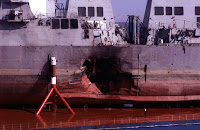 Now regarding the October 12, 2000, attack on the USS Cole…the billion dollar naval destroyer that was attacked while docked off Yemen’s coast for refueling…saw her being approached by a small skiff packed with explosives and manned by two al-Qaeda suicide bombers who when near the ship detonated explosive charges. The blast created a 60-by40 foot hole in the ship’s hull, killing 17 crew members and injuring 39 others.